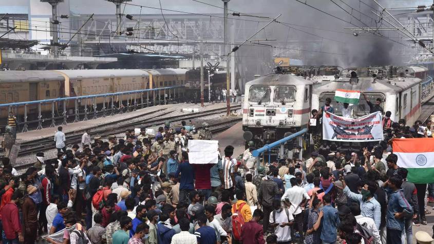 नई दिल्ली, 20 जून (ऐजेंसी/अशोक एक्सप्रेस)। सेना में भर्ती की नई ‘‘अग्निपथ योजना’’ को वापस लेने की अपनी मांग को लेकर भारतीय युवा कांग्रेस के कार्यकर्ताओं ने सोमवार को राष्ट्रीय राजधानी में कनॉट प्लेस के निकट शिवाजी ब्रिज रेलवे स्टेशन पर एक ट्रेन को रोका।