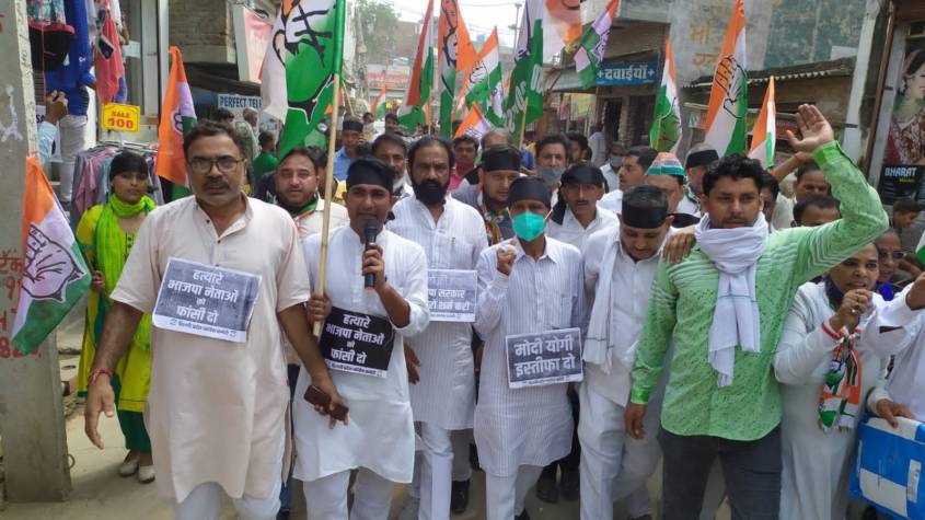 लखीमपुर में भाजपा के गृहमंत्री के पुत्र द्वारा किसानों पर गाड़ी चढ़ा कर हत्या करने के विरोध यात्रा निकाली